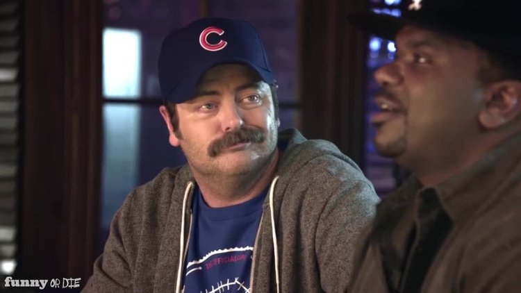 Nick Offerman & Craig Robinson square off in their own Windy City showdown, and neither of them show any hint of backing down. Chicago baseball fans know this struggle, as the Cubs and White Sox share one of the stoutest, most historic rivalries in all of professional sports. The Cubs-White Sox rivalry has even given rise to a number of nicknames, including the Crosstown Classic, the (already mentioned) Windy City Showdown, Chicago Showdown, Red Line Series, North-South Showdown, Halsted Street Series, City Series, Crosstown Series, Crosstown Cup, or Crosstown Showdown.